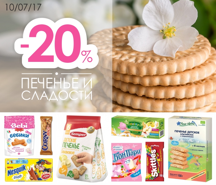 10 июля - скидка 20% на ПЕЧЕНЬЕ и СЛАДОСТИ!