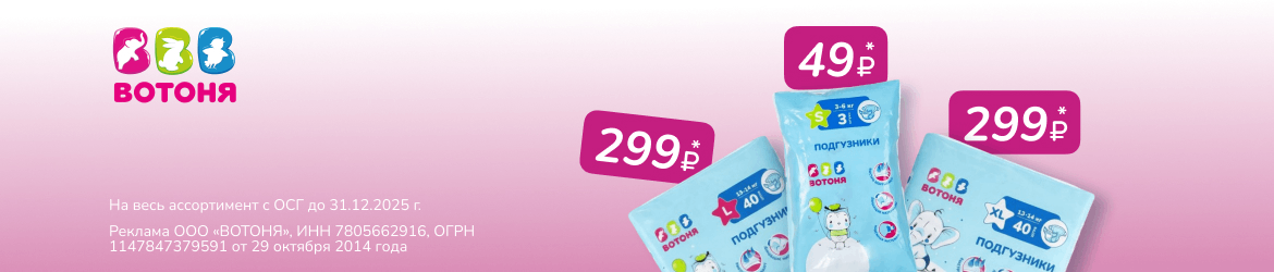 Подгузники и средства по уходу за ребенком в интернет-магазине votonia.ru