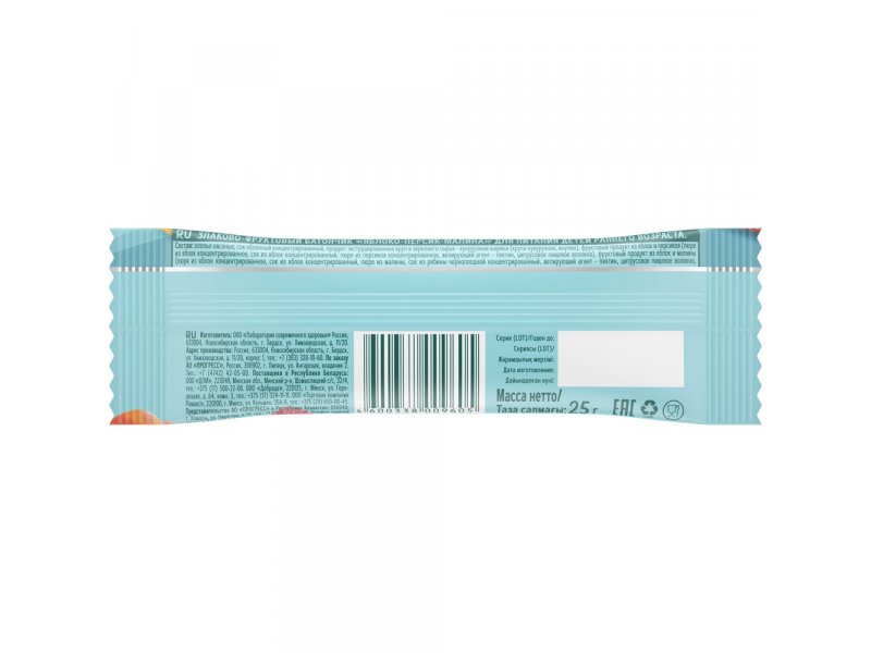 Батончик злаково-фруктовый ФрутоНяня Яблоко-Персик-Малина 25 г