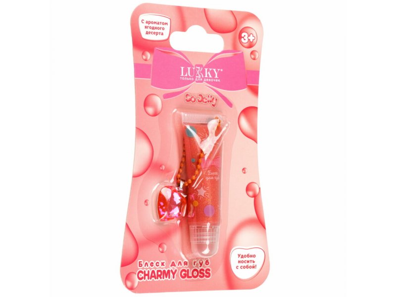 Блеск для губ Lukky Charmy Gloss сверкающий с ароматом ягодного десерта, браслетик с подвеской 5 мл
