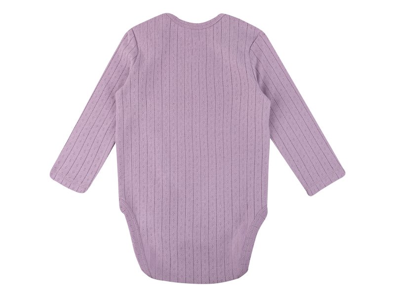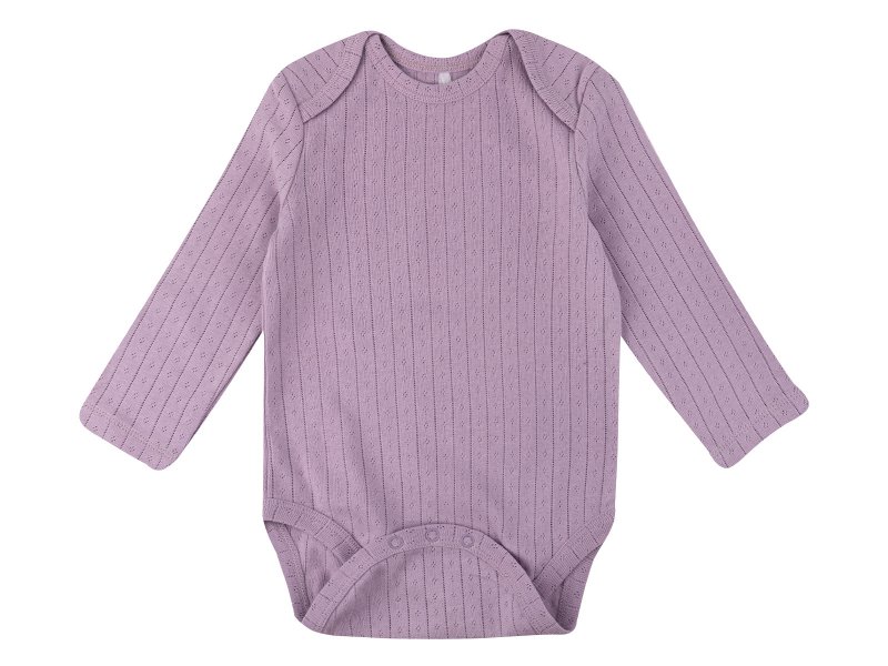 Нежное сиреневое боди Palloncino для новорожденной девочки с длинным рукавом. Изготовлено из 100% хлопка (интерлок) – мягкого, дышащего и гипоаллергенного материала, идеального для чувствительной кожи малышки. Удобные кнопки облегчают переодевание. Стильный дизайн и комфорт для вашей принцессы с первых дней жизни.