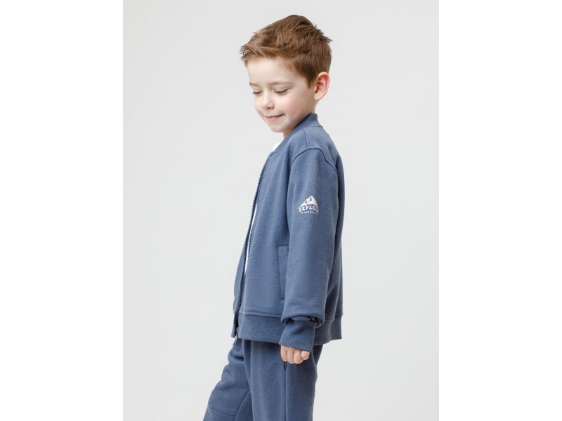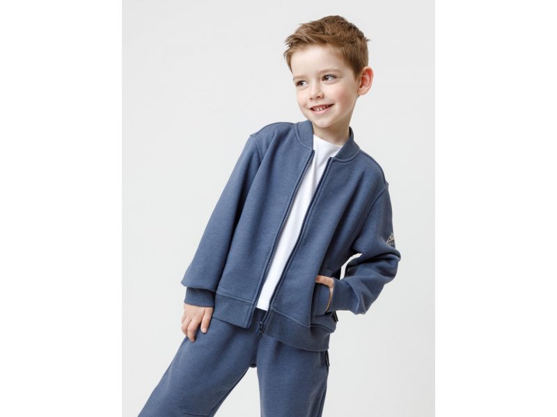 Бомбер для мальчика на молнии. Изготовлен из мягкого петельчатого футера трёхнитки. Воротник, манжеты и пояс выполнены из эластичного полотна. По бокам два кармана. Изделие сохраняет цвет и форму после многократных стирок. Все трикотажные полотна производятся в соответствии с нормами швейцарского сертификата ЭкоТекс. Состав: 67% хлопок, 33% полиэстер. Ткань: Футер трехнитка петля