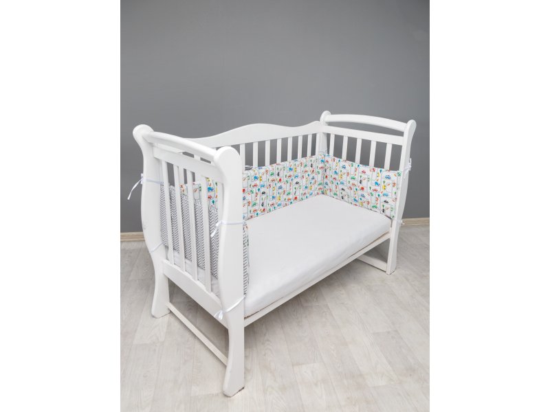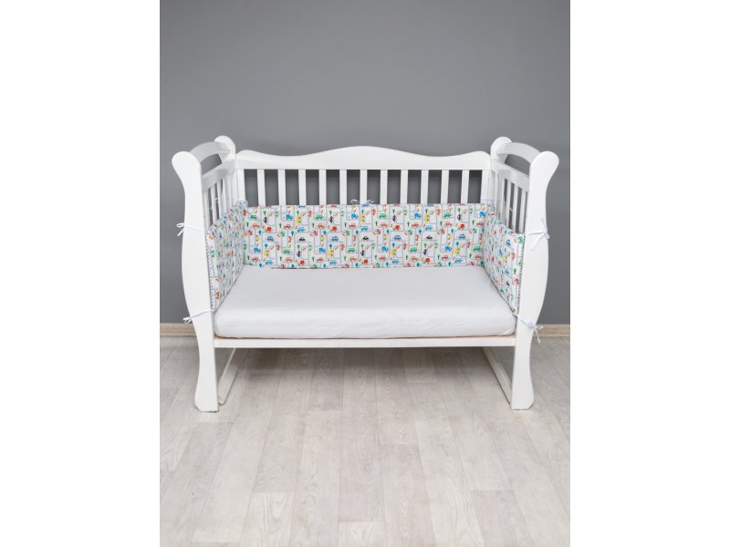 Комплект детского постельного белья 4 предмета (4 подушки-бортика со съемными наволочками на молнии) AmaroBaby идеально подойдет для Вашего малыша! Бортики представлены в виде 4х подушек на завязках, наволочки на бортиках съёмные, на молнии. Уникальный принт. Мягкий наполнитель бортиков детского комплекта постельного белья обезопасит сон вашего малыша. Бортики выполнены из натурального 100% хлопка. Мягкая ткань не раздражает чувствительную и нежную кожу ребенка и приятна на ощупь. Наполнитель - файберпласт. Постельное белье хорошо вентилируется. Постельное белье от Amarobaby не требует особого ухода и долго сохраняет первоначальный внешний вид. Комплект представлен в стильном и веселом дизайне.