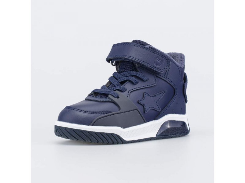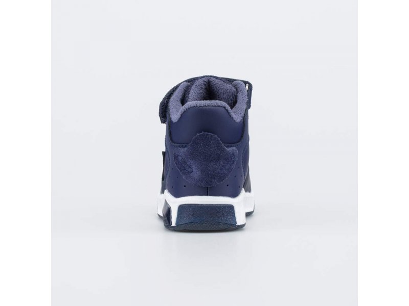 Утепленные ботинки синего цвета на байковой подкладке подходят для мальчика-школьника. Верх выполнен из сочетания натуральной и искусственной кожи с несквозной перфорацией в пяточной части. Подкладка из шерстяной байки, на 80% состоящая из натуральной шерсти, и войлочная стелька согревают и отводят от стоп испарения. Шнурки-резинки и липучки-велькро позволяют быстро обуваться и разуваться. Подошва из ТПР (термопластичной резины) обладает хорошей устойчивостью. Она дополнена мигающими при ходьбе светодиодами. Модель анатомически правильная: во внутреннем пространстве есть небольшая приподнятость пяточной части, которая незаметна внешне, круглый носок не стесняет движений пальчиков, шерстяная стелька приформовывается к стопе, принимая индивидуальную форму. Это положительно влияет на развитие стоп и всего опорно-двигательного аппарата.
