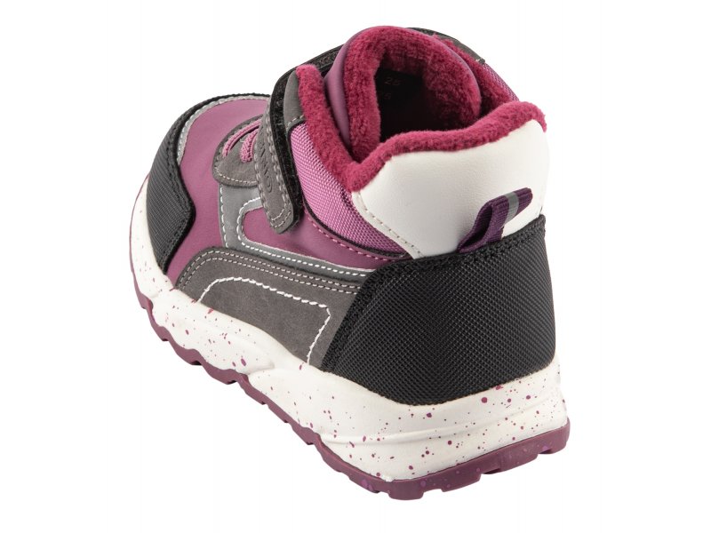 Эти стильные и удобные ботинки выполнены из прочного материала, который защищает от влаги и холода. Мягкая подкладка и анатомическая стелька обеспечивают комфорт при длительной носке. Яркий дизайн и оригинальные детали порадуют как детей, так и родителей.