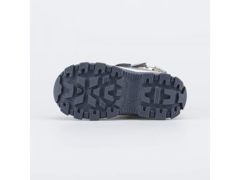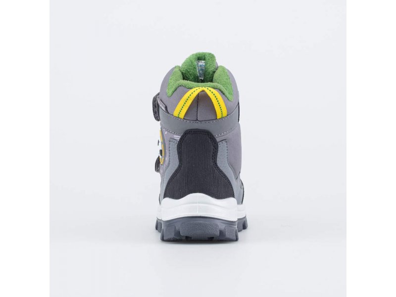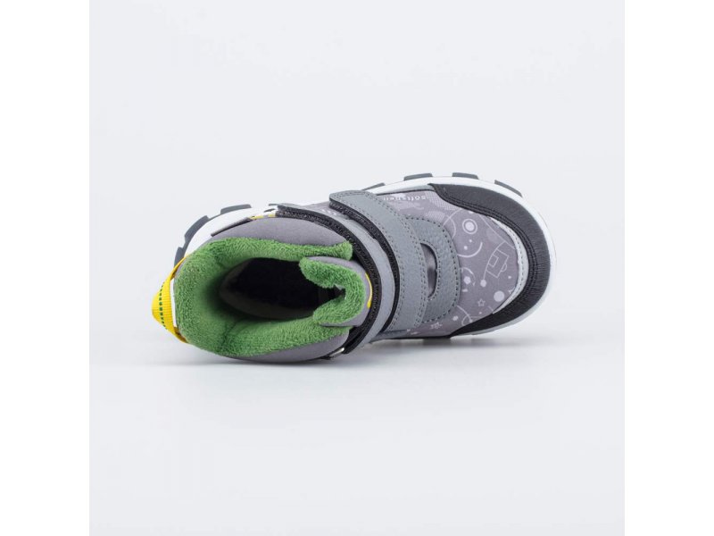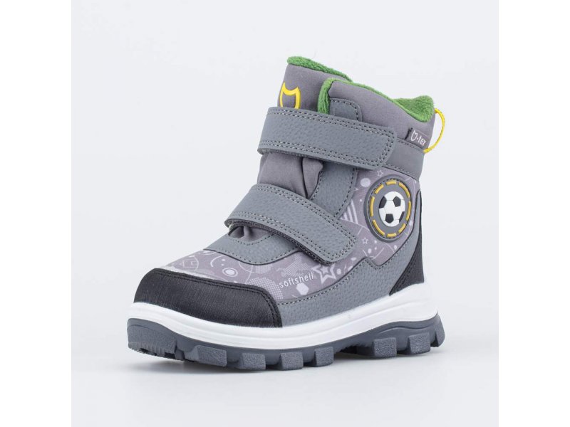 Мембранные ботинки серого цвета для мальчика-дошкольника выполнены с применением технологии SoftShell.