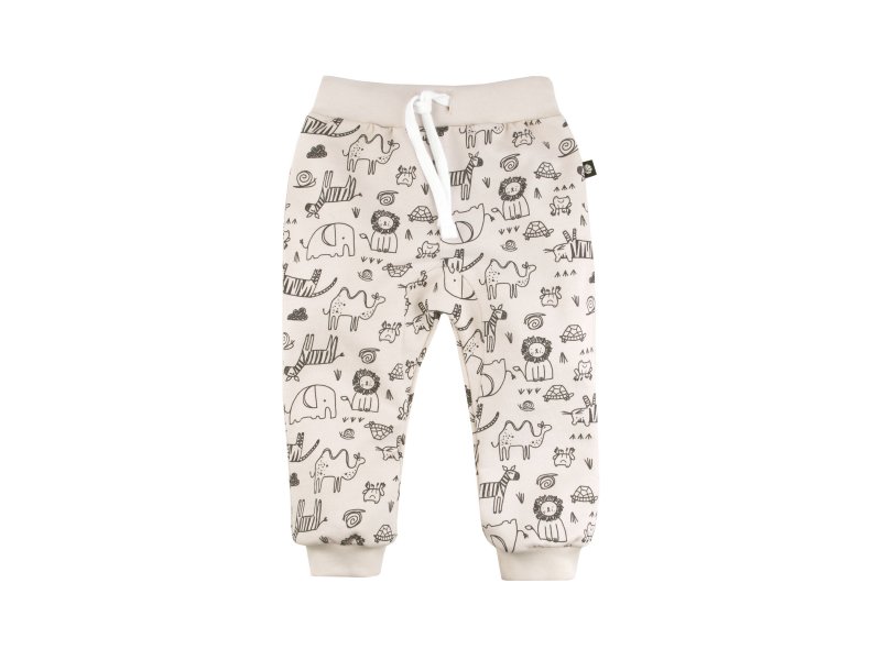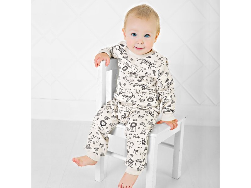 Брюки для мальчика Bossa Nova выполнены из футера. Это мягкая трикотажная ткань с очень приятной для тела изнаночной стороной. Оригинальный принт Сафари. На брючинах манжеты. На поясе шнур для регулировки брюк по талии малыша.