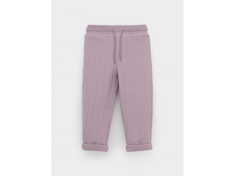 Тёплые брюки для девочки из мягкого капитония. Капитоний – это стёганое трикотажное полотно с утеплителем из полиэстеровой нити. Модель с эластичным поясом на резинке регулируется по ширине при помощи шнурка. Все трикотажные полотна производятся в соответствии с нормами швейцарского сертификата ЭкоТекс.