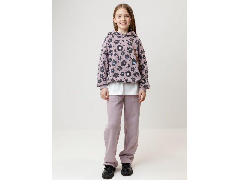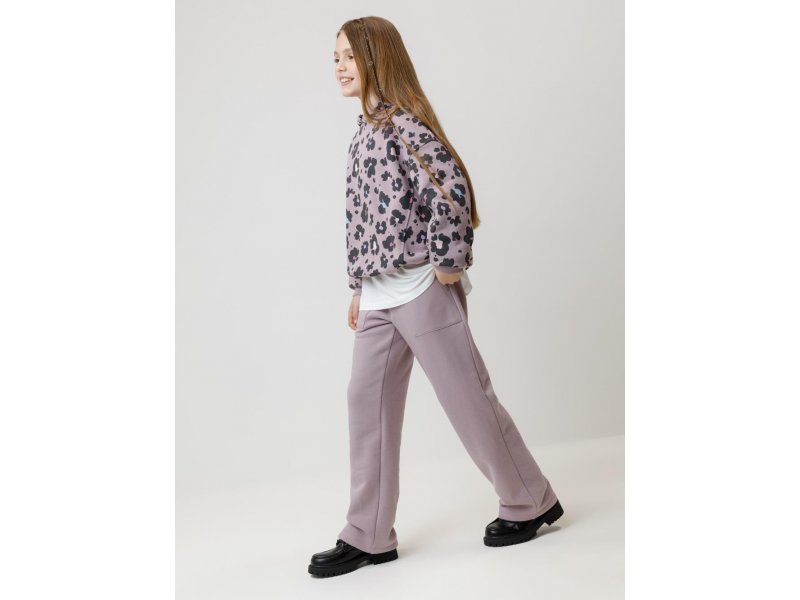 Прямые брюки для девочки из мягкого трикотажа с начёсом. Эластичный пояс на резинке регулируется по ширине с помощью шнурка. По бокам два удобных накладных кармана. Изделие сохраняет цвет и форму после многократных стирок. Все трикотажные полотна производятся в соответствии с нормами швейцарского сертификата ЭкоТекс. Состав: 80% хлопок, 20% полиэстер. Ткань: Футер трехнитка начес
