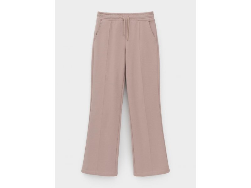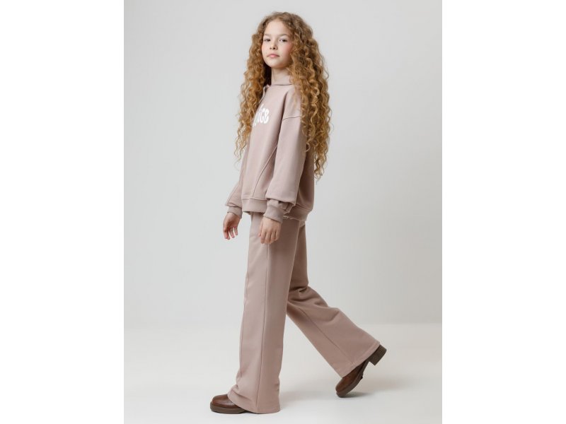 Прямые брюки со стрелками для девочки из мягкого петельчатого трикотажа. Эластичный пояс на резинке регулируется по ширине с помощью шнурка. По бокам два удобных кармана. Спереди застроченные стрелки. Изделие сохраняет цвет и форму после многократных стирок. Все трикотажные полотна производятся в соответствии с нормами швейцарского сертификата ЭкоТекс. Состав: 80% хлопок, 20% полиэстер. Ткань: Футер трехнитка петля