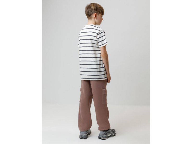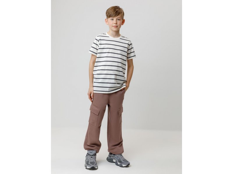 Брюки для мальчика из мягкого петельчатого футера трёхнитки. В составе 80% натурального хлопка и 20% полиэстера, при этом полиэстер ввязан внутрь по особой технологии и не соприкасается с кожей. Модель с эластичным поясом на резинке и утягивающим шнурком для регулировки по талии. По бокам четыре удобных кармана. Низ на манжетах. Изделие сохраняет цвет и форму после многократных стирок. Все трикотажные полотна производятся в соответствии с нормами швейцарского сертификата ЭкоТекс.