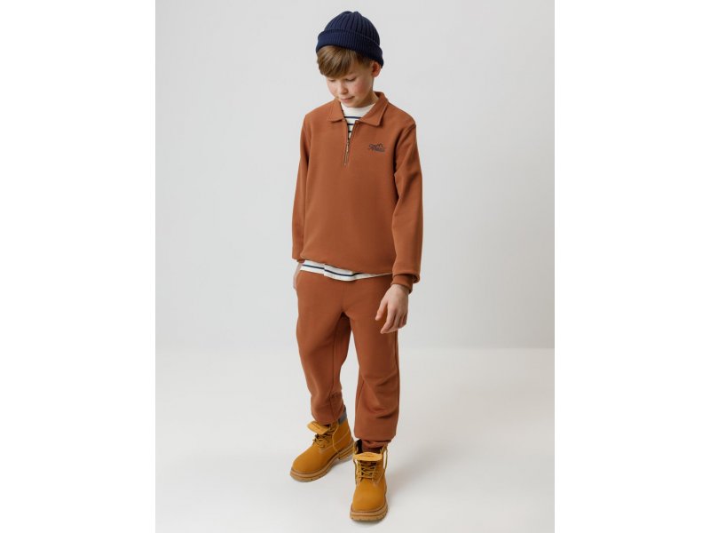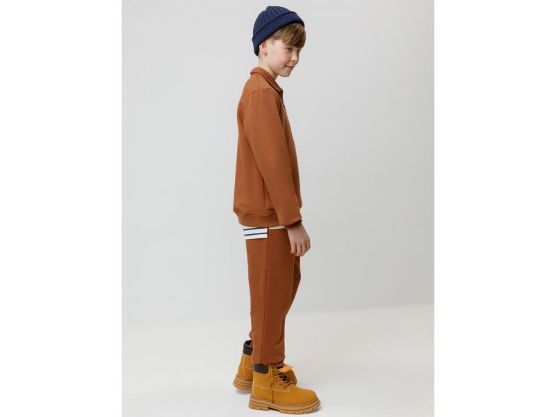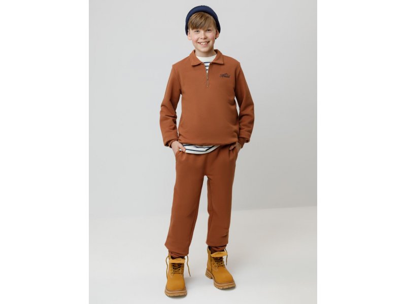 Тёплые брюки для мальчика из мягкого футера с начёсом. Модель с эластичным поясом на резинке регулируется по ширине с помощью шнурка. По бокам два удобных кармана. Низ на манжетах. Изделие сохраняет цвет и форму после многократных стирок. Все трикотажные полотна производятся в соответствии с нормами швейцарского сертификата ЭкоТекс.