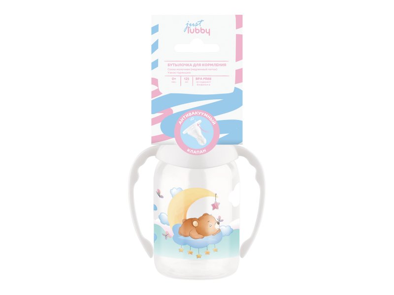 Бутылочка для кормления Lubby Just с силиконовой соской и ручками, от 0 мес., 125 мл