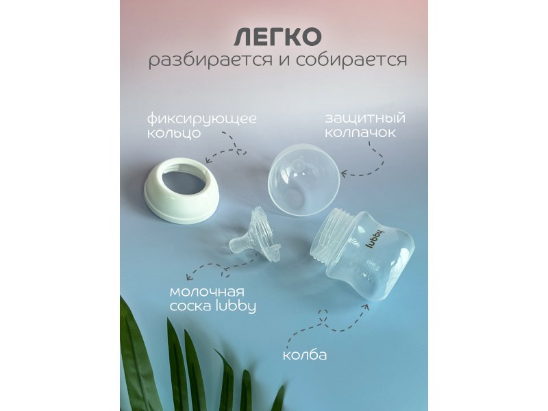 Бутылочка Lubby Бионика с молочной соской и широким горлышком, от 0 мес, 120 мл