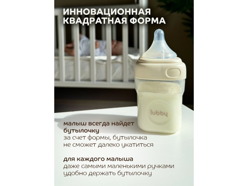 Бутылочка Lubby Геометрия с молочной соской и широким горлышком, от 0 мес, 150 мл