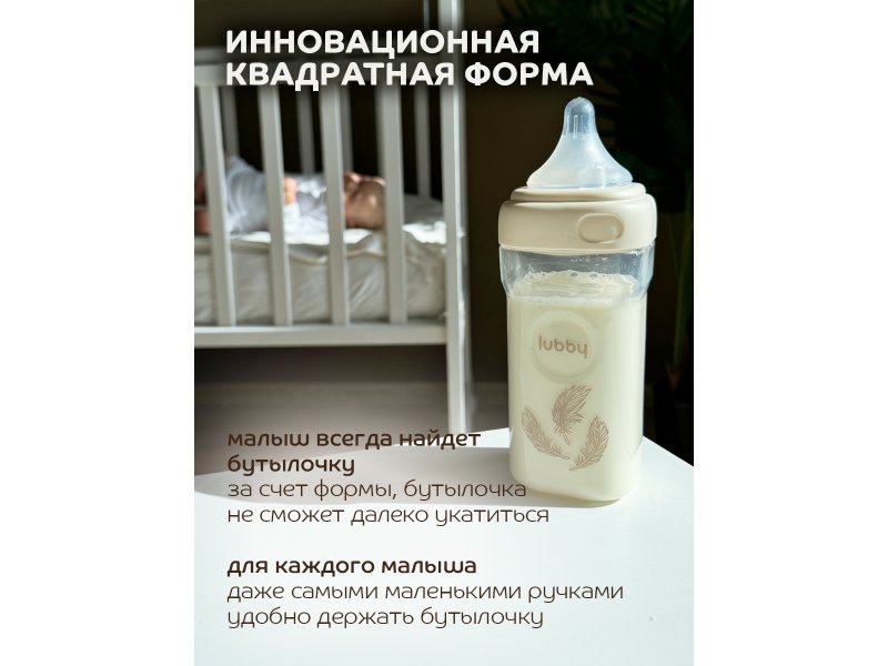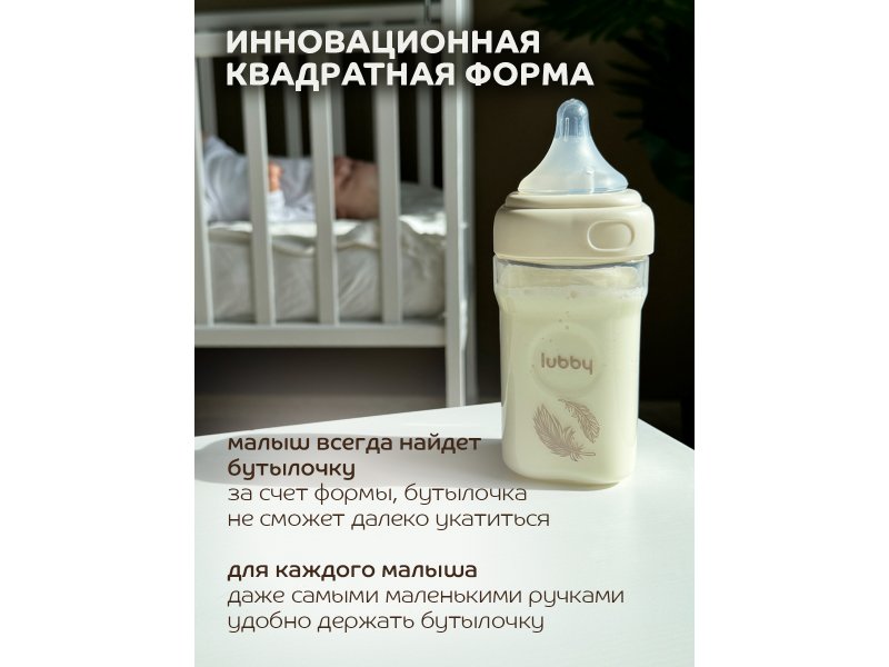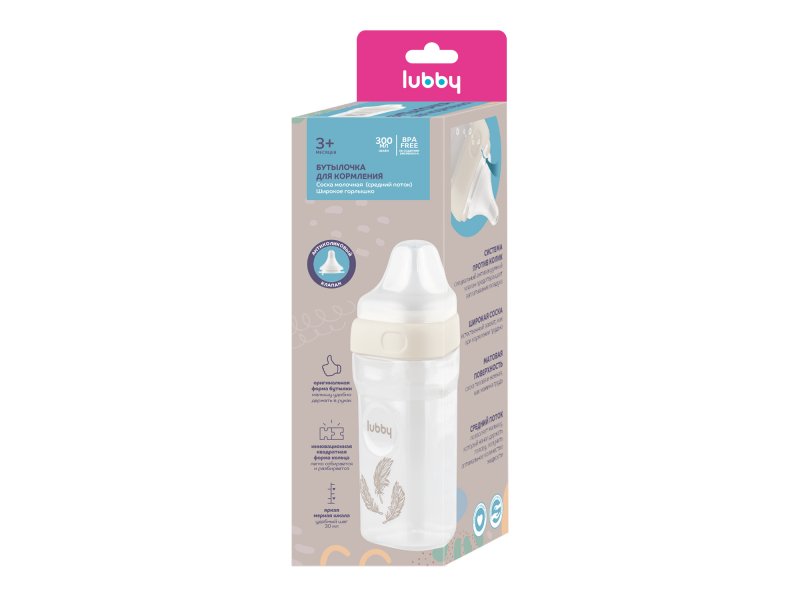 Бутылочка Lubby Геометрия с молочной соской и широким горлышком, от 3 мес, 300 мл