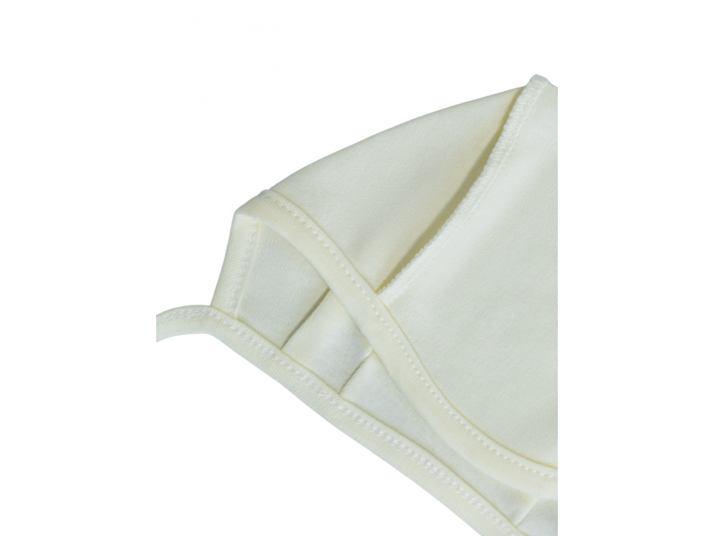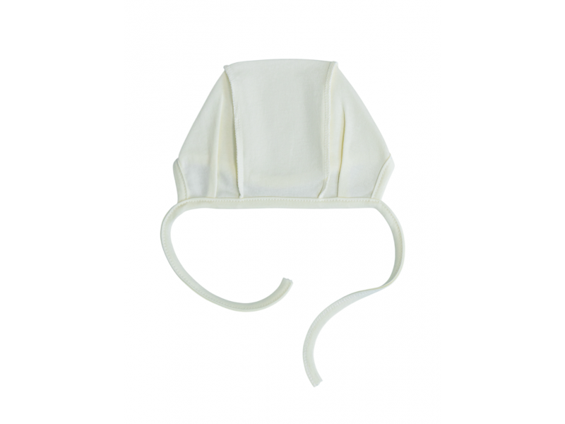 Чепчик с центральной частью и двумя боковыми с завязками из бейки.