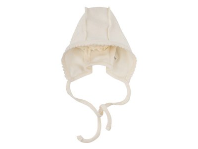 Чепчик Leratutti с завязками. Край шапочки обработан мягкой бейкой, которая переходит в завязки. Изделие выполнено швами наружу.