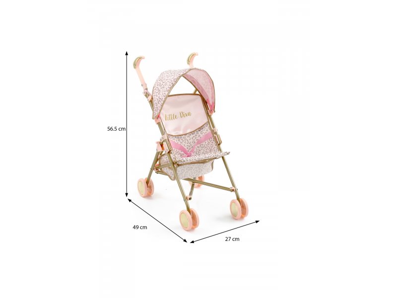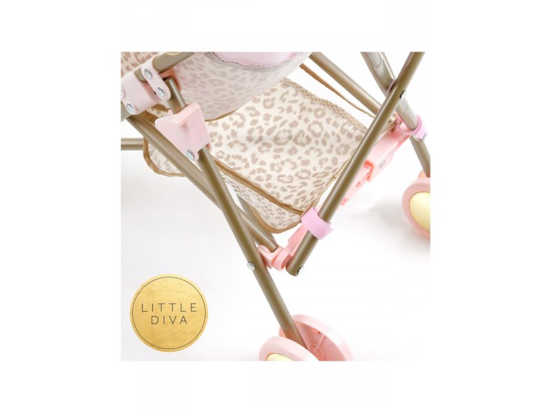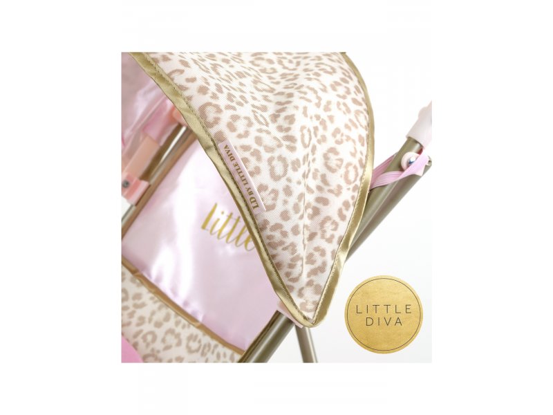 Перед вами классическая коляска-трость для куклы Little Diva Drive sun. Коляска произведена брендом Hauck, создающим настоящие коляски для детей. Невероятно нежная расцветка - использован текстиль розового цвета с леопардовым рисунком, на спинке коляски нанесено золотыми буквами название серии коляски.