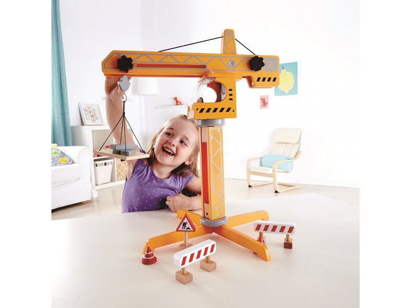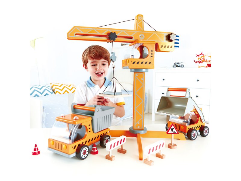 • Будущий строитель дает волю своему воображению, возводя строительную площадку с помощью этого комплекта кранов.