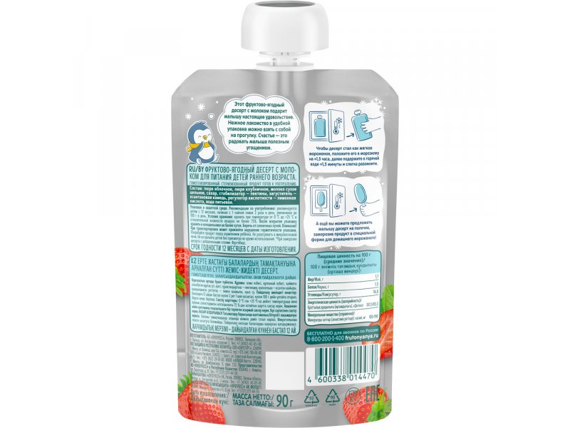 Десерт ФрутоKids Фруктово-ягодный с молоком 90 г