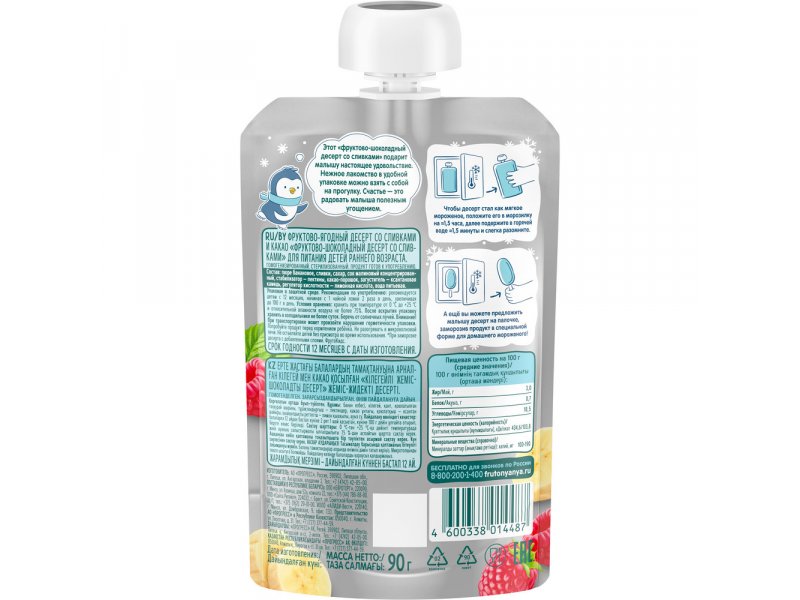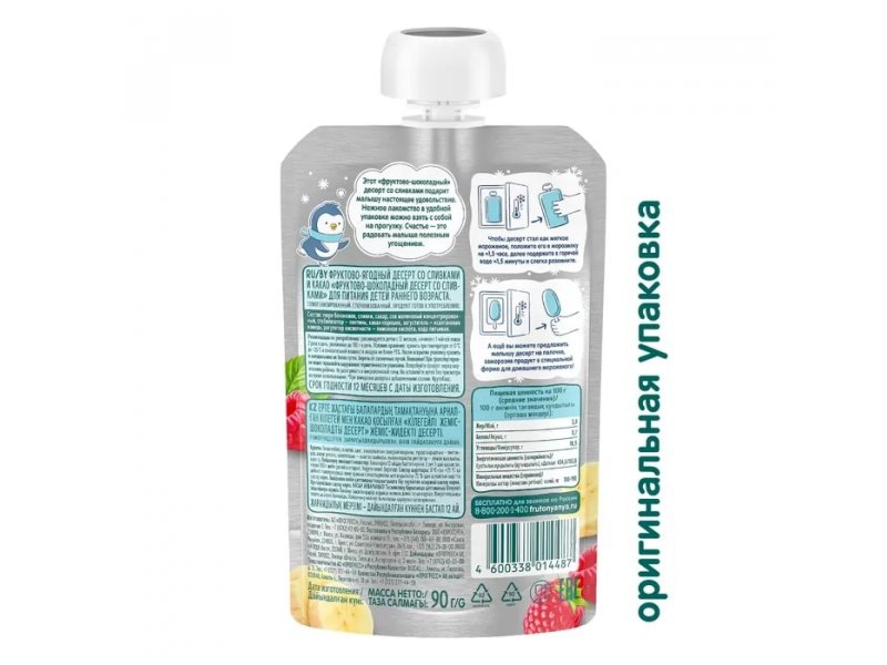 Десерт ФрутоKids Фруктово-ягодный со сливками и какао 90 г
