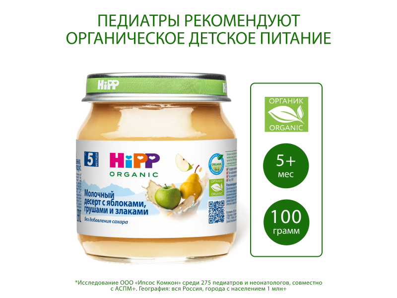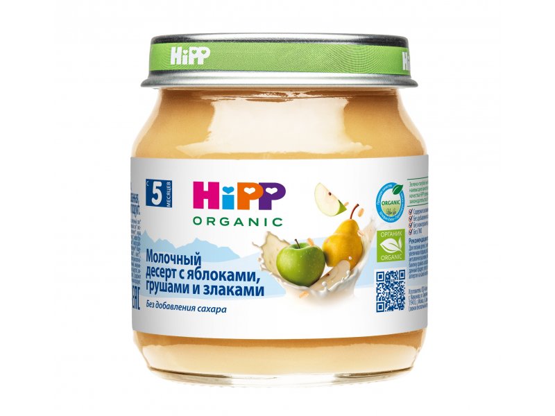 Молочный десерт HiPP с яблоками и грушами и злаками – это органический продукт высшего качества: