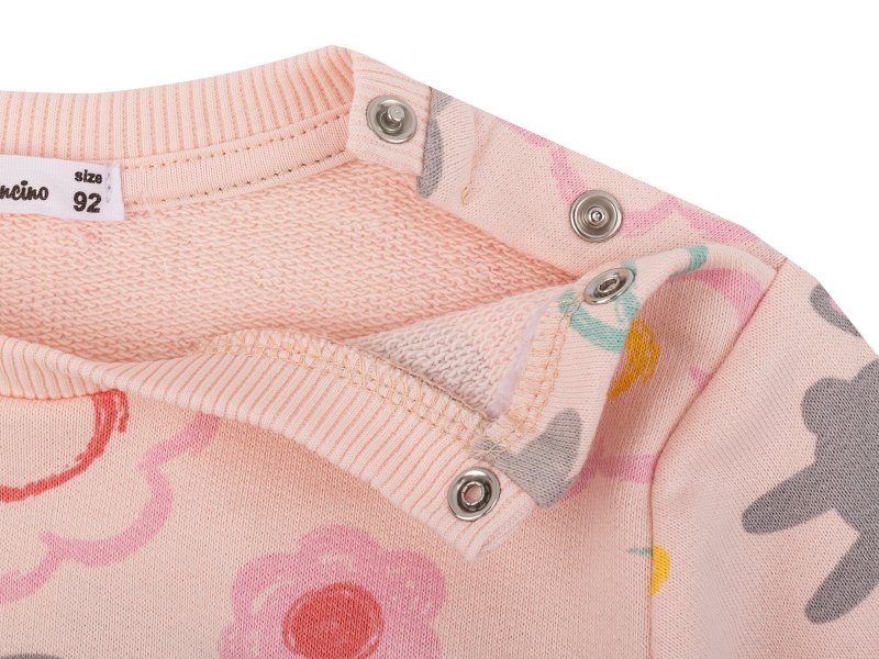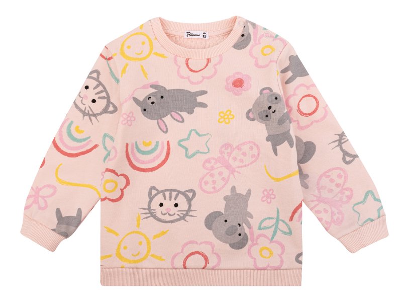 Подарите вашей маленькой художнице уют и вдохновение с этим очаровательным свитшотом от бренда Palloncino. Нежный персиково-розовый оттенок создает атмосферу тепла и нежности, а уникальный принт, имитирующий детские рисунки, пробудит в вашей малышке дух творчества и самовыражения.