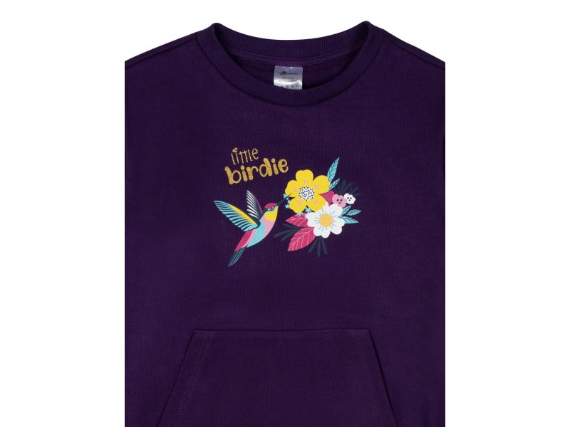 Свитшот с капюшоном с застежкой на молнию прямого свободного кроя. Рукава и низ изделия обработаны мягкими манжетами. Её можно носить дома, в детском садике, школе или на прогулке. Кофта для девочки подойдет к брюкам, к джинсам и даже к шортам, можно одевать поверх майки или футболки.