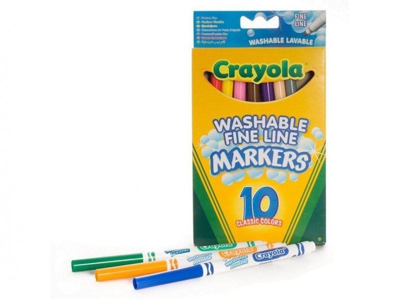 10 тонких смываемых фломастеров Crayola подходят для выполнения рисунков любой сложности. Благодаря конической форме наконечника вы можете проводить как тонкие, так и широкие линии одним и тем же фломастером. Еще одно достоинство этих фломастеров в том, что они легко смываются. Цвет равномерно ложится на бумагу и не выцветает, но если ребенок изрисовал руки, одежду или мебель, вы можете очистить их с помощью обычной воды и мыла.