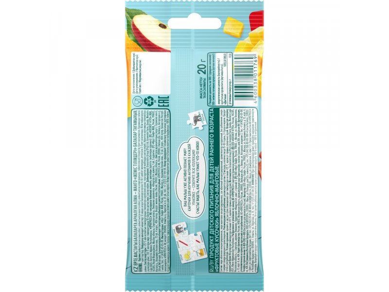 Фруктовые кусочки ФрутоНяня Пазлы Яблоко, манго 20 г
