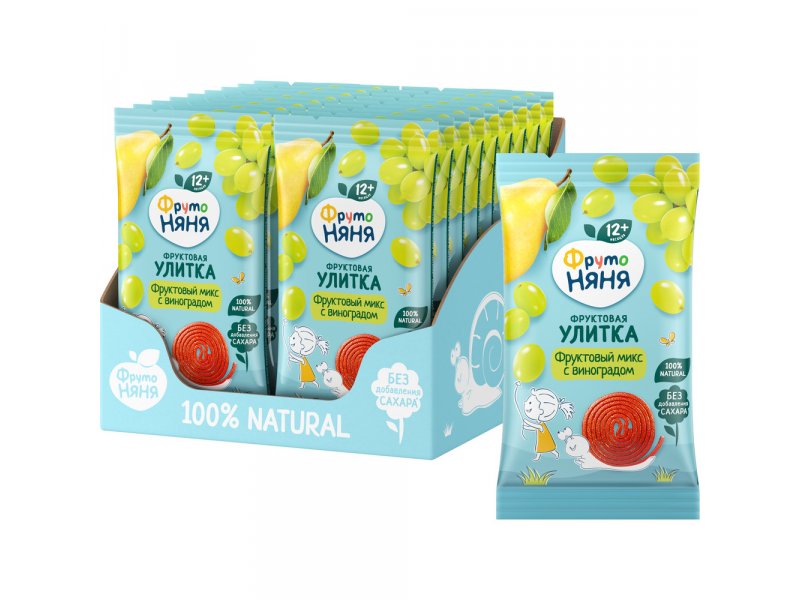 Фруктовая улитка «Фруктовый микс с виноградом» от «ФрутоНяни» — это вкусное и полезное лакомство для малышей старше 12 месяцев. Сочетание фруктового микса с сочным виноградом порадует вашего малыша, а родители оценят отсутствие добавленного сахара, ведь в составе только соки и пюре фруктов и ягод. Увлекательная форма фруктового мармелада помогает развивать мелкую моторику. Внутри каждой упаковки коллекционная карточка для знакомства с окружающим миром. Возьмите фруктовую улитку с собой на прогулку или в дорогу, чтобы ваш малыш мог подкрепиться в любое время. Хранить в чистых сухих помещениях при температуре не выше +25 °С, вдали от прямых солнечных лучей.