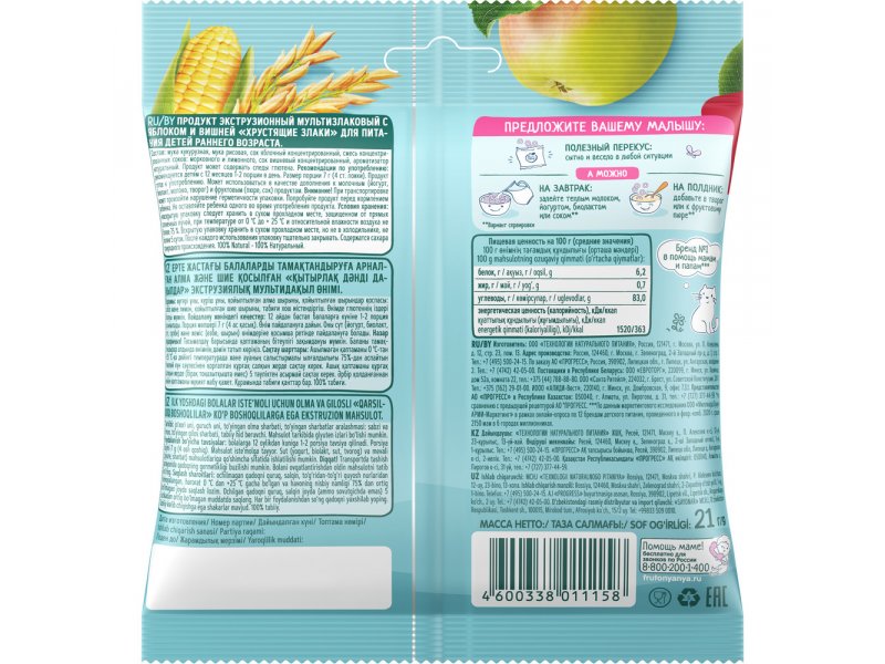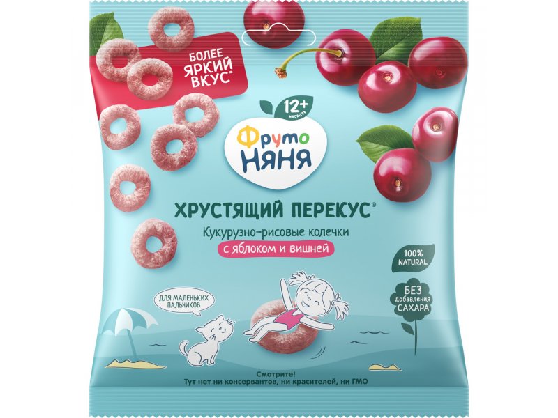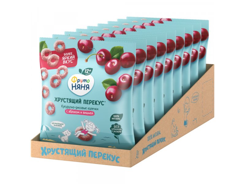Фрутопаффсы ФрутоНяня кукурузно-рисовые с яблоком и вишней, 21 г
