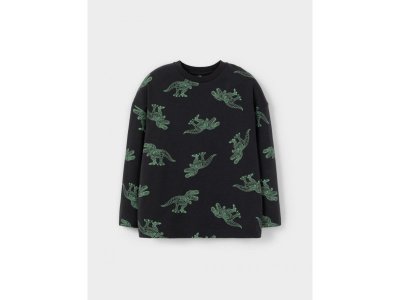Уникальный дизайн: Главная изюминка лонгслива – это его оригинальный принт. На темно-синем фоне красуется деловой динозавр диплодок, который, несмотря на свои внушительные размеры, уверенно рассекает на скейте, спеша по важным делам. Этот забавный и вдохновляющий образ добавит позитива и индивидуальности вашему стилю.
