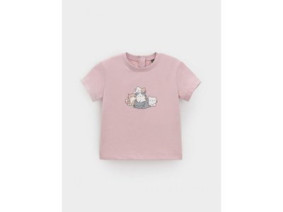 Очаровательная и стильная трикотажная футболка для девочки с принтом Единорог. На горловине спинки изделия выполнен бант. Линия плеча спущена. Изделие свободное по низу.