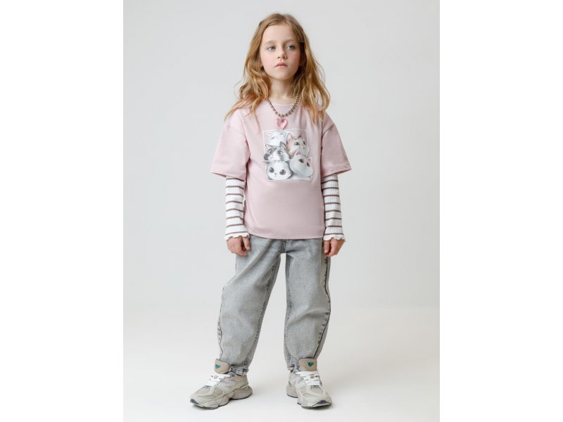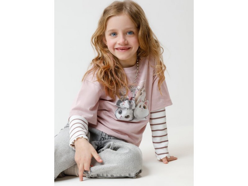 Футболка для девочки из гладкого трикотажа, произведённого из высококачественного натурального хлопка.