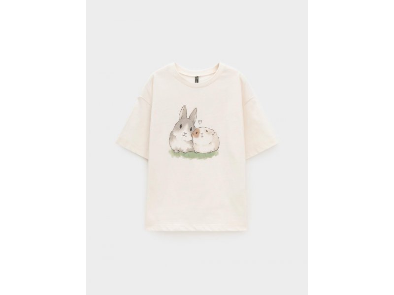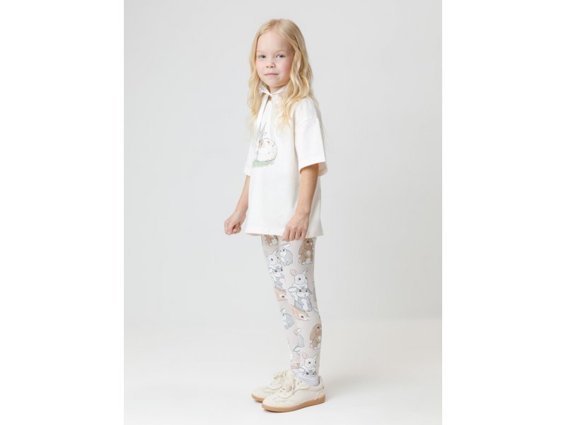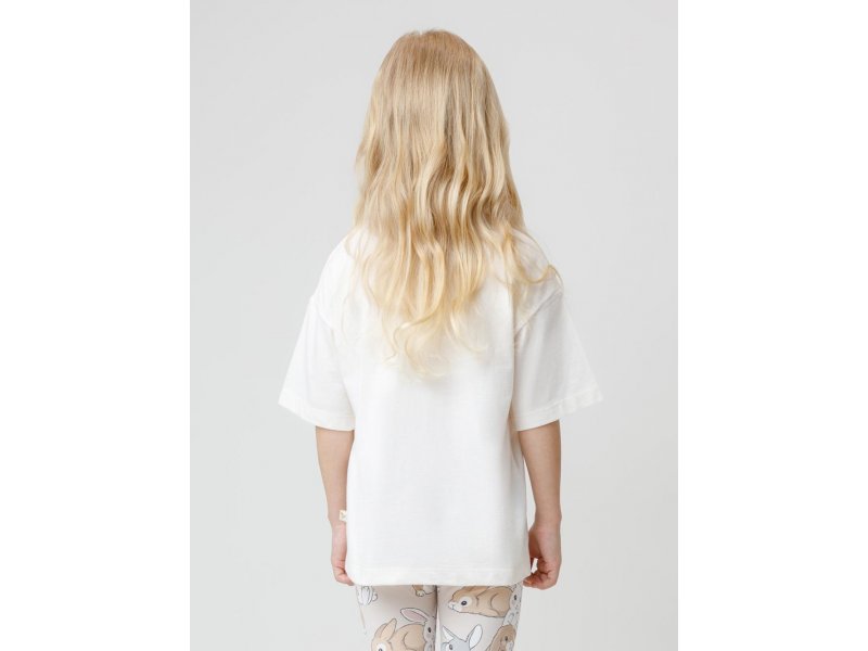 Футболка для девочки из гладкого трикотажа, произведённого из высококачественного натурального хлопка. Застёгивается на спине на кнопки в размерах 92 и 98. Оригинальный принт выполнен из стойких текстильных гипоаллергенных красителей. Изделие сохраняет цвет и форму после многократных стирок. Все трикотажные полотна производятся в соответствии с нормами швейцарского сертификата ЭкоТекс.