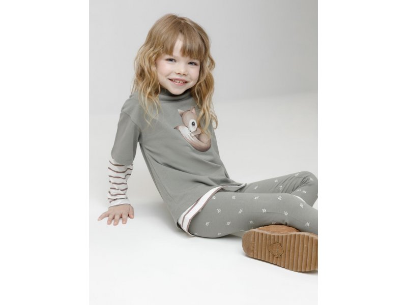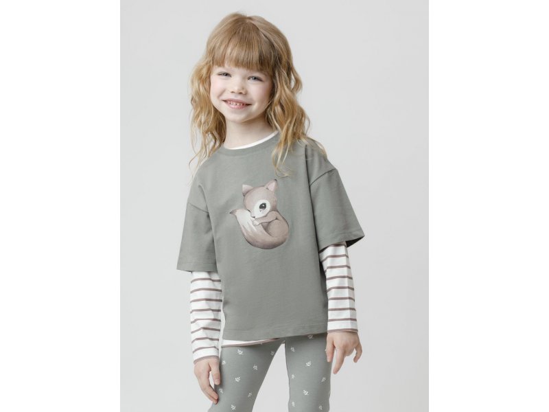 Футболка для девочки из гладкого трикотажа, произведённого из высококачественного натурального хлопка. Застёгивается на спине на кнопки в размерах 92 и 98. Оригинальный принт выполнен из стойких текстильных гипоаллергенных красителей. Изделие сохраняет цвет и форму после многократных стирок. Все трикотажные полотна производятся в соответствии с нормами швейцарского сертификата ЭкоТекс.