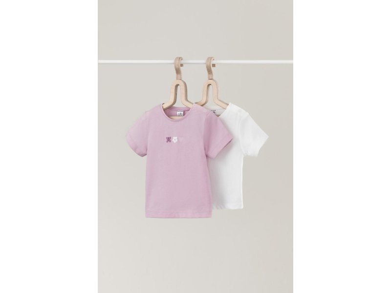 Футболки для девочки из высококачественного трикотажа супрем, произведённого из натурального хлопка. В упаковке 2 штуки. Для удобства на плече застёжка на кнопки. Все трикотажные полотна производятся в соответствии с нормами Швейцарского сертификата ЭкоТекс. Состав: 100% хлопок. Ткань: Супрем