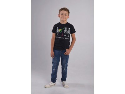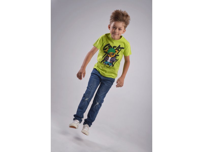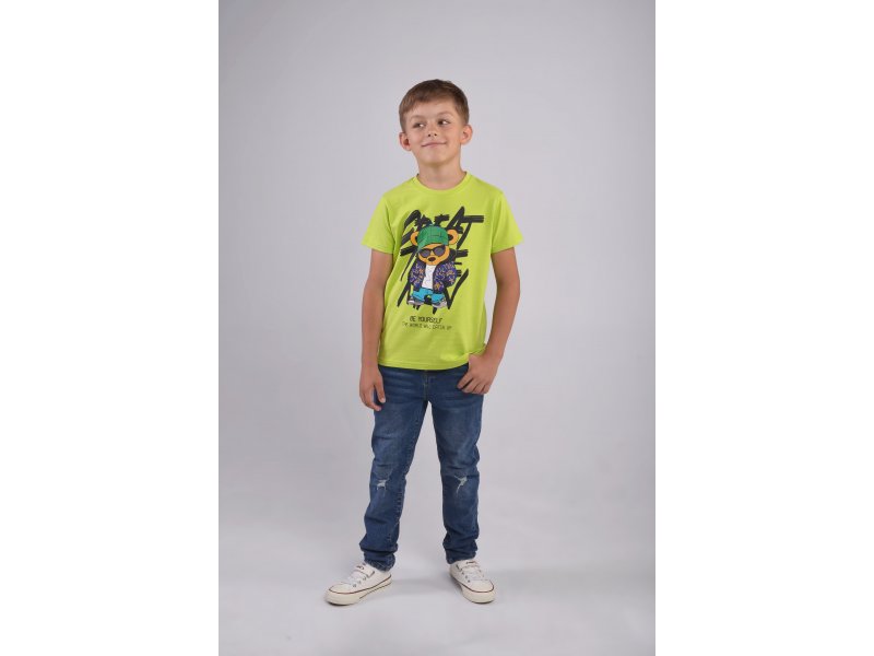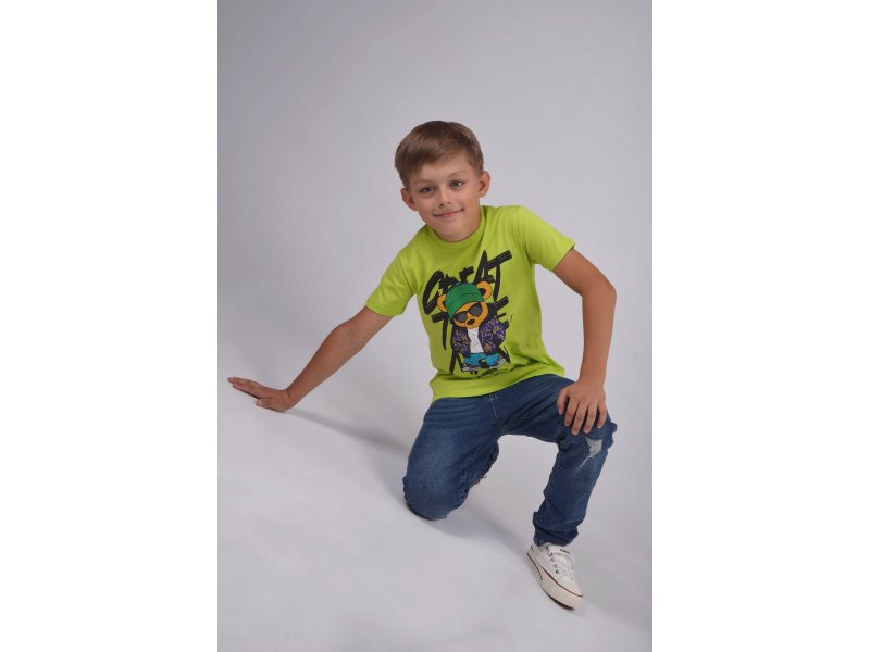 Стильная футболка для мальчика, свободного кроя и классической длины из качественного мягкого хлопкового полотна 170 г/м2 с принтом, выполненным в технологии rubber print (рабер принт) - нанесение картинки на изделие с использованием полимерного текстурного красителя - современный подход в принтовании, позволяющий сохранить яркость и устойчивость красок, не делая рисунок грубым и "резиновым". Принт в стиле граффити на насыщенном цвете изделия - главный компонент стильного образа мальчика-подростка.