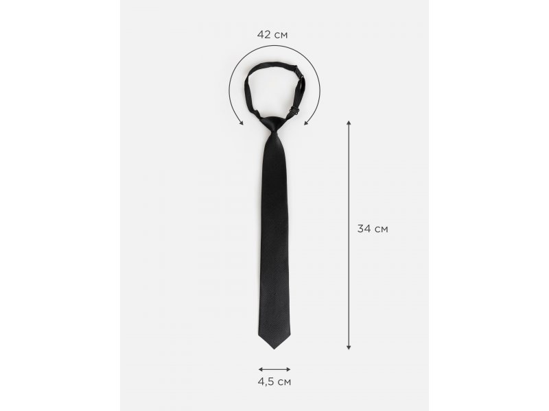Детский регулируемый галстук на резинке — это стильный и практичный аксессуар, идеально подходящий для мальчиков. Этот черный галстук с текстурой в полоску сочетает в себе элегантность и удобство. Благодаря регулируемому обхвату шеи и пластиковой застежке, он легко адаптируется под размер ребенка, обеспечивая комфорт при ношении. Длина галстука составляет 34 см, а ширина снизу — 4,5 см, что создает аккуратный и современный внешний вид. Максимальная длина тесьмы для шеи — 42 см, что позволяет отрегулировать её для детей разного возраста. Такой галстук отлично подойдет для школьных мероприятий, праздников или особых случаев, добавляя образу мальчика нотки классики и стиля. Он легко надевается и снимается благодаря удобной застежке, а его универсальный дизайн делает его подходящим для различных образов.