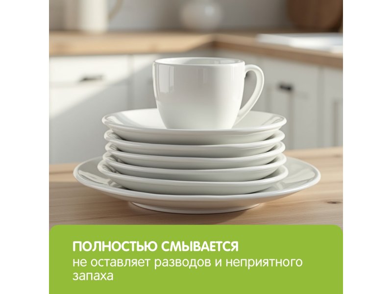 Концентрированное эффективное и безопасное средство для мытья посуды.