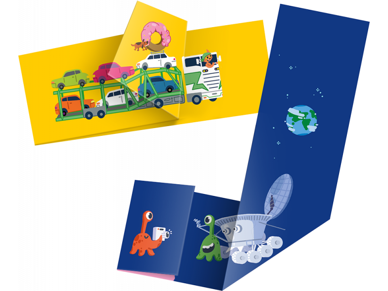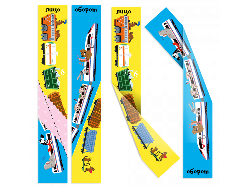 Здесь мы складываем "Сгибалки" про виды транспорта. Это не просто картинки, а целые сюжеты, из которых весело придумывать рассказы. Например, пофантазируйте, куда грузовой поезд везет бревна и живого слона? Как большой розовый пончик попал на автовоз? Какой сон видит бегемот в скором поезде? Разве так сложно согнуть лист?