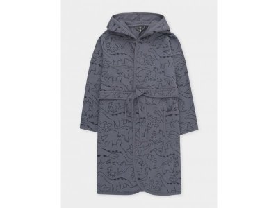 Халат с тонким капюшоном. Изготовлен из набивного хлопкового трикотажа футер петля. С помощью пояса можно регулировать посадку по фигуре. Сверху застёжка на кнопку. Края изделия обработаны мягким кантом. На боку накладной карман, уходящий в шов. Оригинальная набивка выполнена из стойких гипоаллергенных текстильных красителей. Все трикотажные полотна производятся в соответствии с нормами швейцарского сертификата ЭкоТекс.