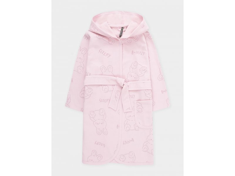 Халат с тонким капюшоном. Изготовлен из набивного хлопкового трикотажа футер петля. С помощью пояса можно регулировать посадку по фигуре. Сверху застёжка на кнопку. Края изделия обработаны мягким кантом. На боку накладной карман, уходящий в шов. Оригинальная набивка выполнена из стойких гипоаллергенных текстильных красителей. Все трикотажные полотна производятся в соответствии с нормами швейцарского сертификата ЭкоТекс.