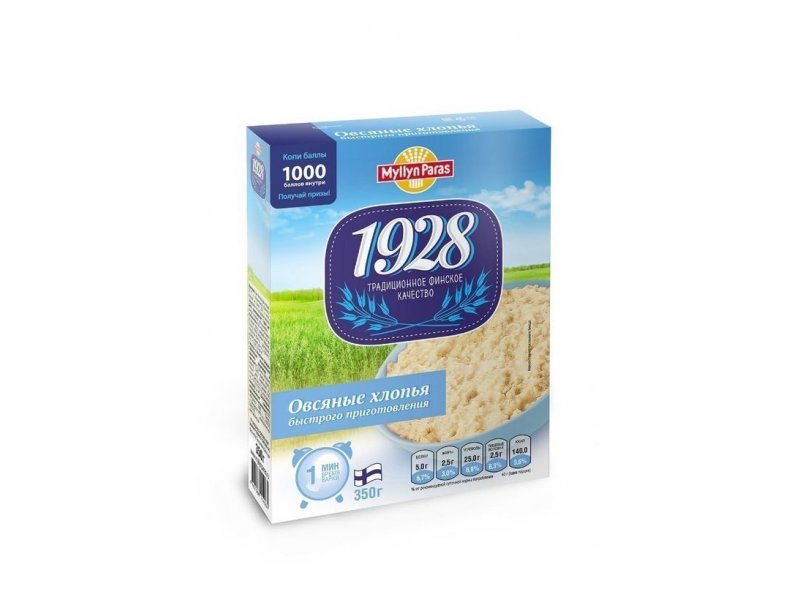 Овсяные хлопья быстрого приготовления Myllyn Paras изготовлены из высококачественных цельных зерен овса, расплющенных в тонкие хлопья, без добавок, без консервантов. Так в овсяных хлопьях Myllyn Paras сохраняются природные витамины и минеральные компоненты, а каша получается вкусной и питательной.