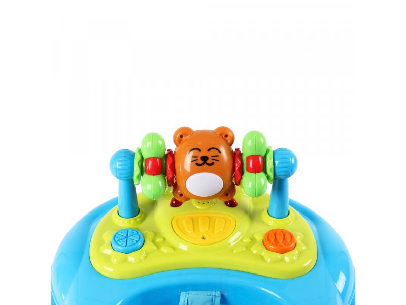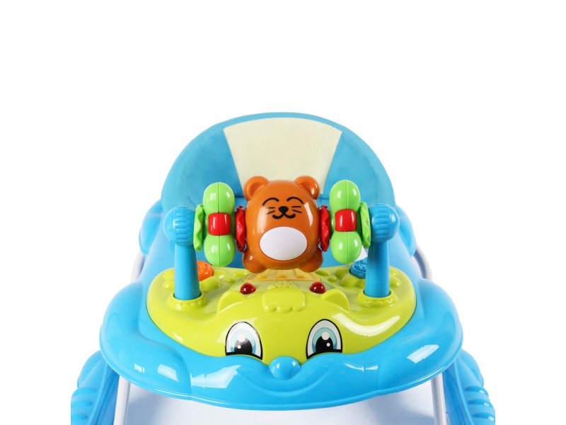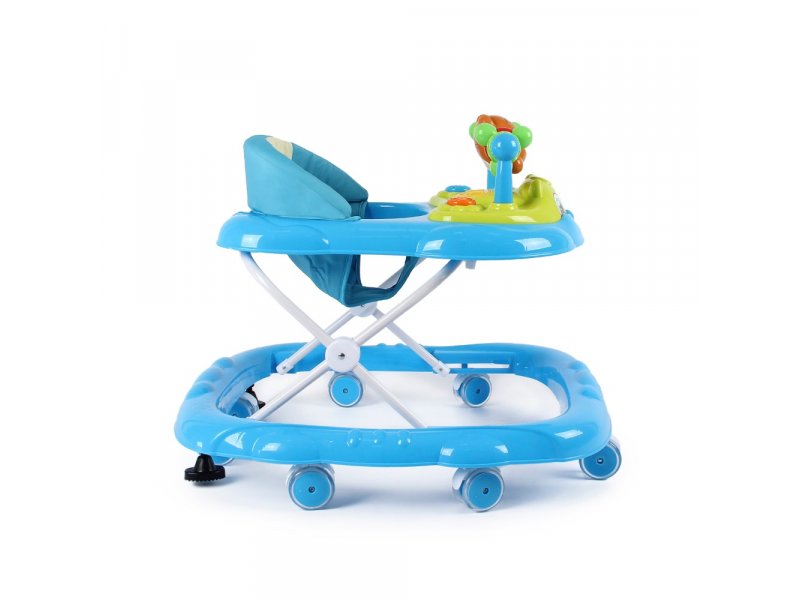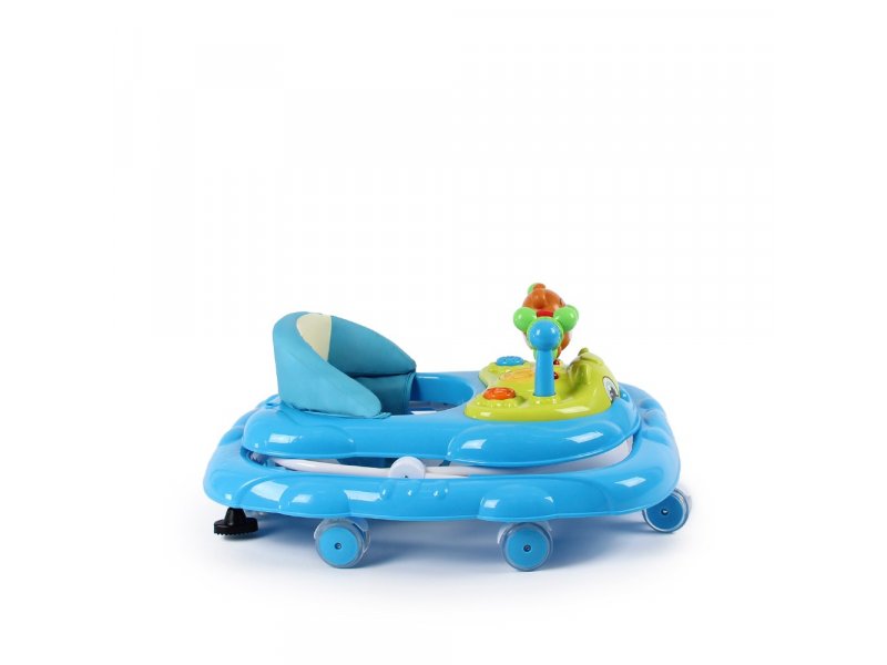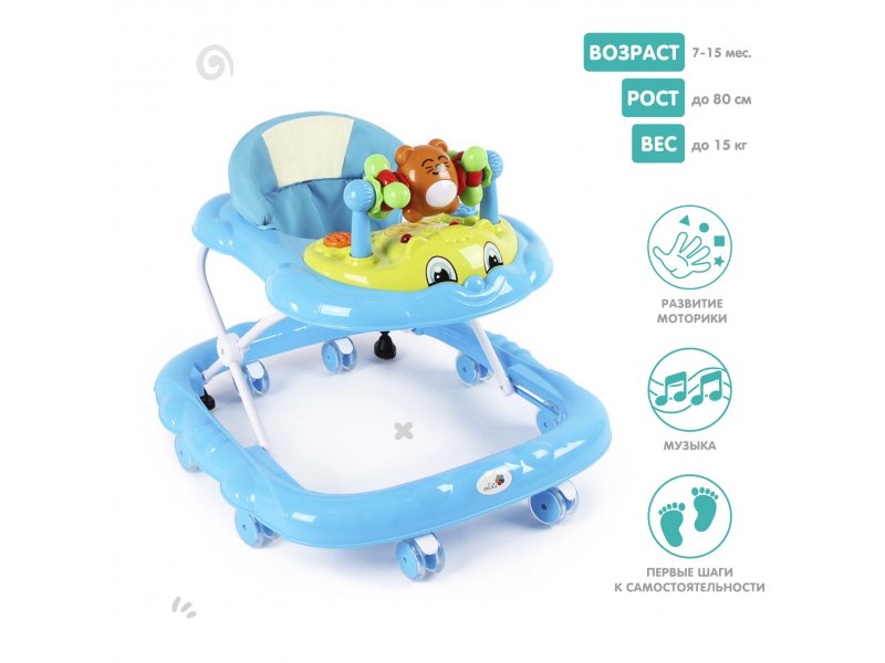 Колеса, размещенные по периметру базы, обеспечат плавный ход. Возможность поставить колеса на тормоз поможет маме приглядеть за малышом и не переживать, что он «укатится» без ее ведома. На ходунках имеются световые и музыкальные элементы, которые развлекут кроху. Несколько уровней по высоте позволят подобрать соответствующий комплекции ребенка.
