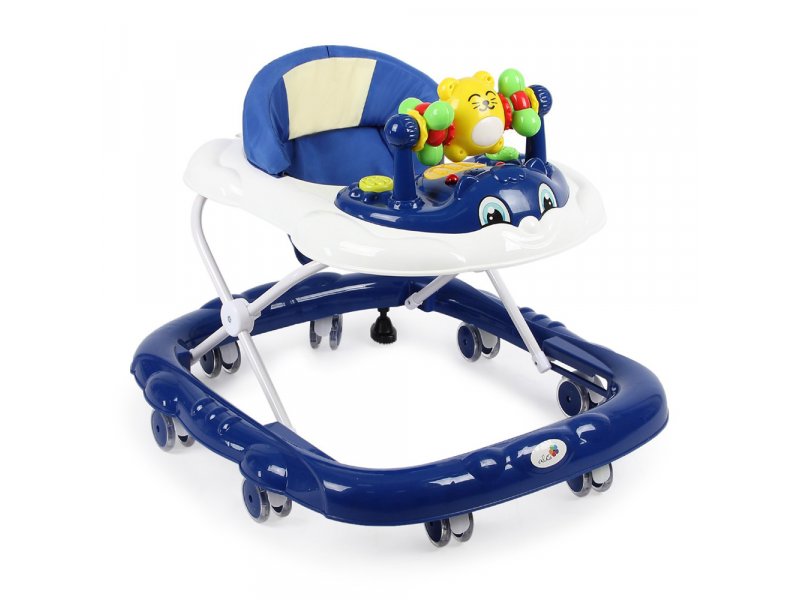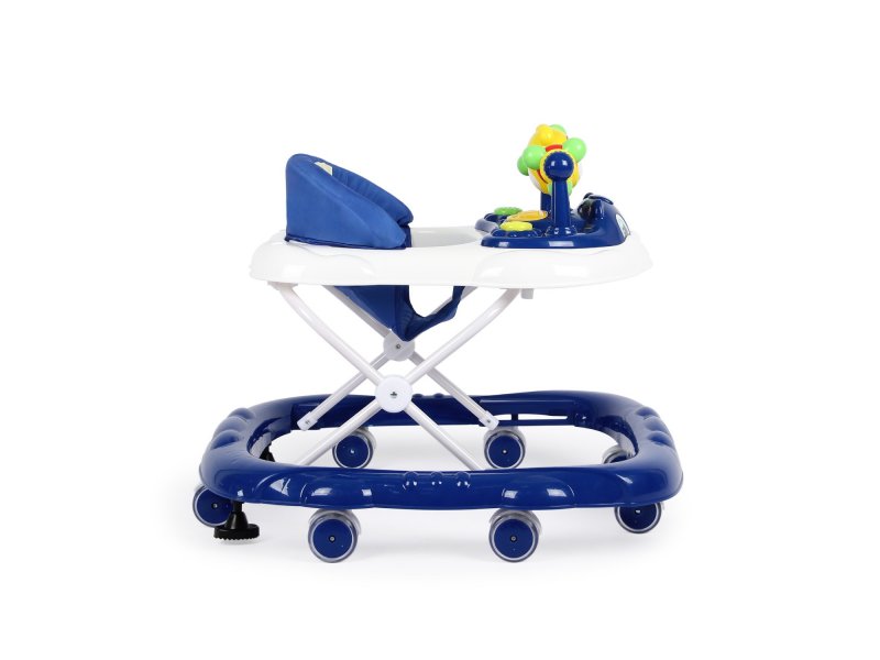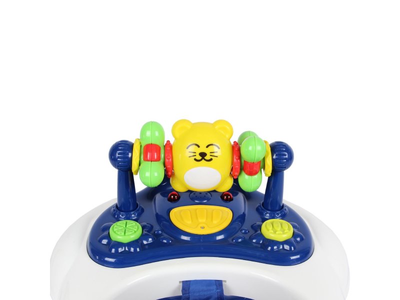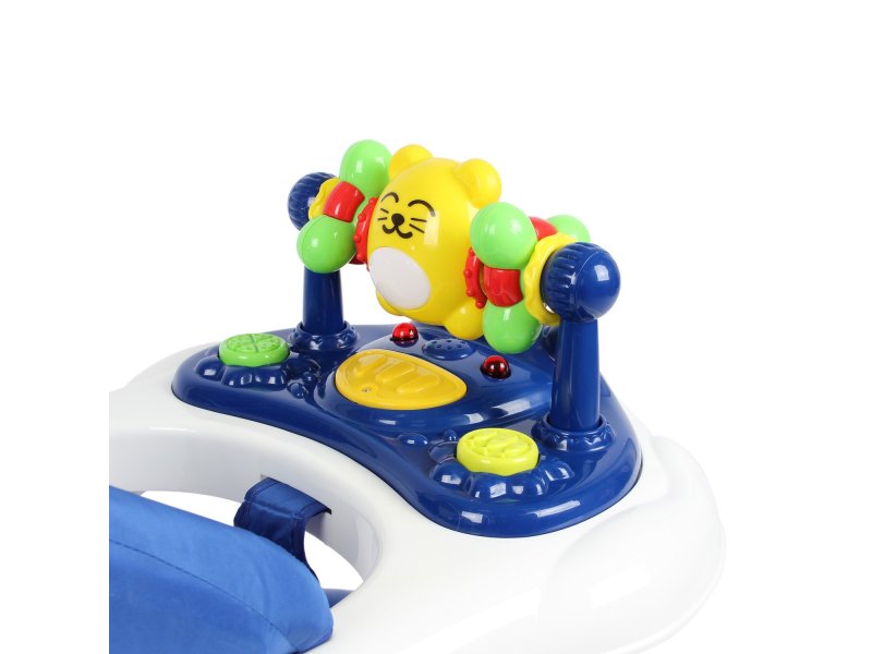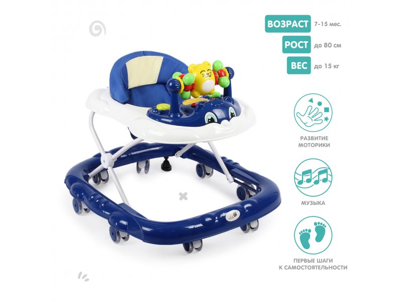 Колеса, размещенные по периметру базы, обеспечат плавный ход. Возможность поставить колеса на тормоз поможет маме приглядеть за малышом и не переживать, что он «укатится» без ее ведома. На ходунках имеются световые и музыкальные элементы, которые развлекут кроху. Несколько уровней по высоте позволят подобрать соответствующий комплекции ребенка.