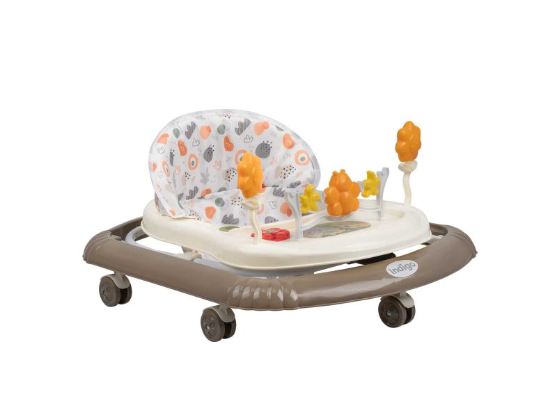 Игровая панель, предусмотренная в ходунках, способствует развитию мелкой моторики и слуха.