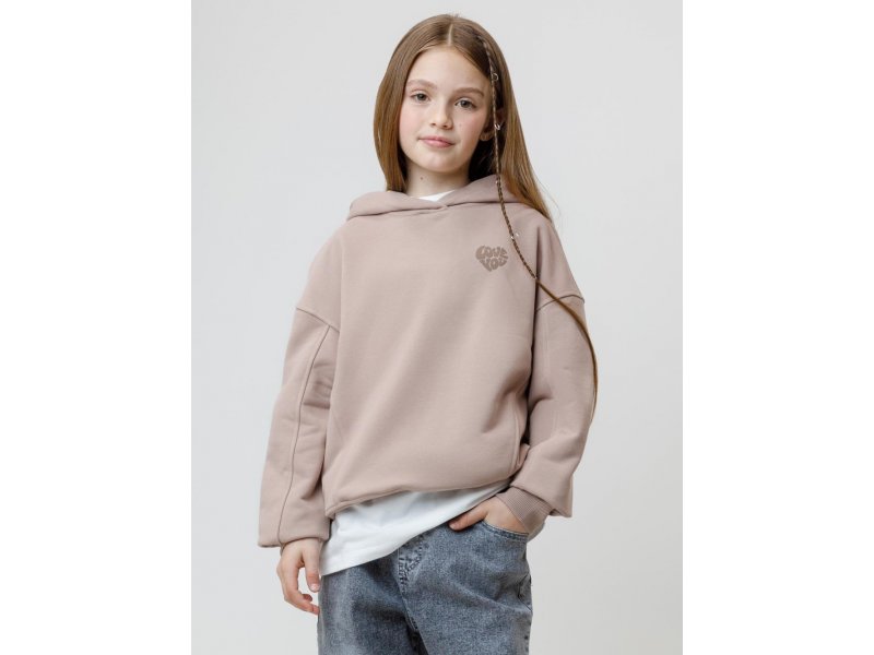 Худи с капюшоном для девочки из мягкого петельчатого футера трёхнитки. Модель оверсайз. Пояс и манжеты выполнены из эластичного трикотажа. Худи сохраняет форму и стойкий цвет после многочисленных стирок и идеально подходит на каждый день. Оригинальный принт выполнен из стойких текстильных гипоаллергенных красителей. Все трикотажные полотна производятся в соответствии с нормами швейцарского сертификата ЭкоТекс. Состав: 80% хлопок, 20% полиэстер. Ткань: Футер трехнитка петля